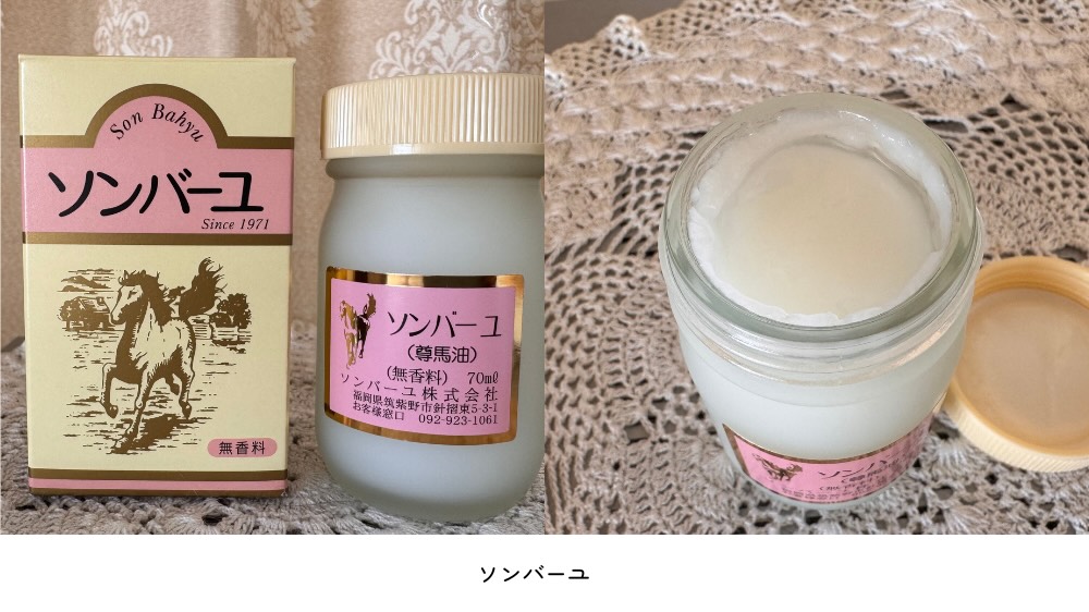 ソンバーユは、顔から体まで全身に使える馬油100%のオイル。無香料で、季節に関係なく使えて、高いコストパフォーマンスが特長の保湿剤です。