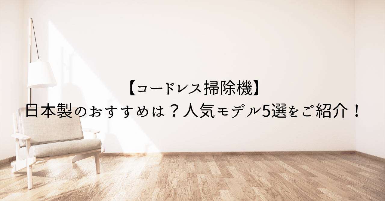 そこでこの記事では、日本製のコードレス掃除機の中から人気モデル5選を厳選して、特徴や向いている人をわかりやすくご紹介します。