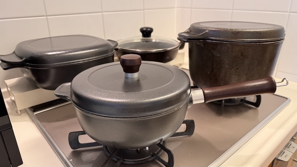 実は私は、味わい鍋を20年近く使っているヘビーユーザーです。最初は片手鍋ひとつからスタートして、今では4つの味わい鍋が毎日の料理作りの大切なパートナーとして活躍してくれています。