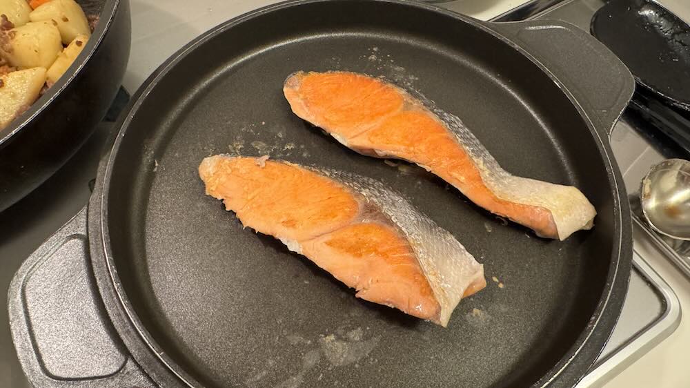 | 素材 | アルミ鋳物+フッ素コーティング(PFOAフリー) | 鋳物+エナメルコーティング |
